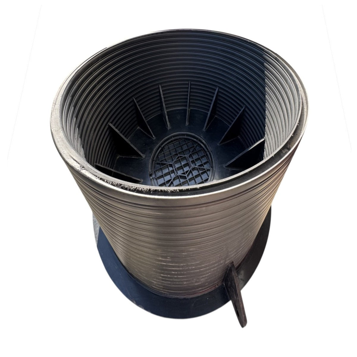 Witterungsbeständiger Kunststoff (Polyethylen). Erdschacht aus Kunststoff mit bruchresistenten Doppelwandrohrwände. Belastungsklasse A15 bis 500 Kg.