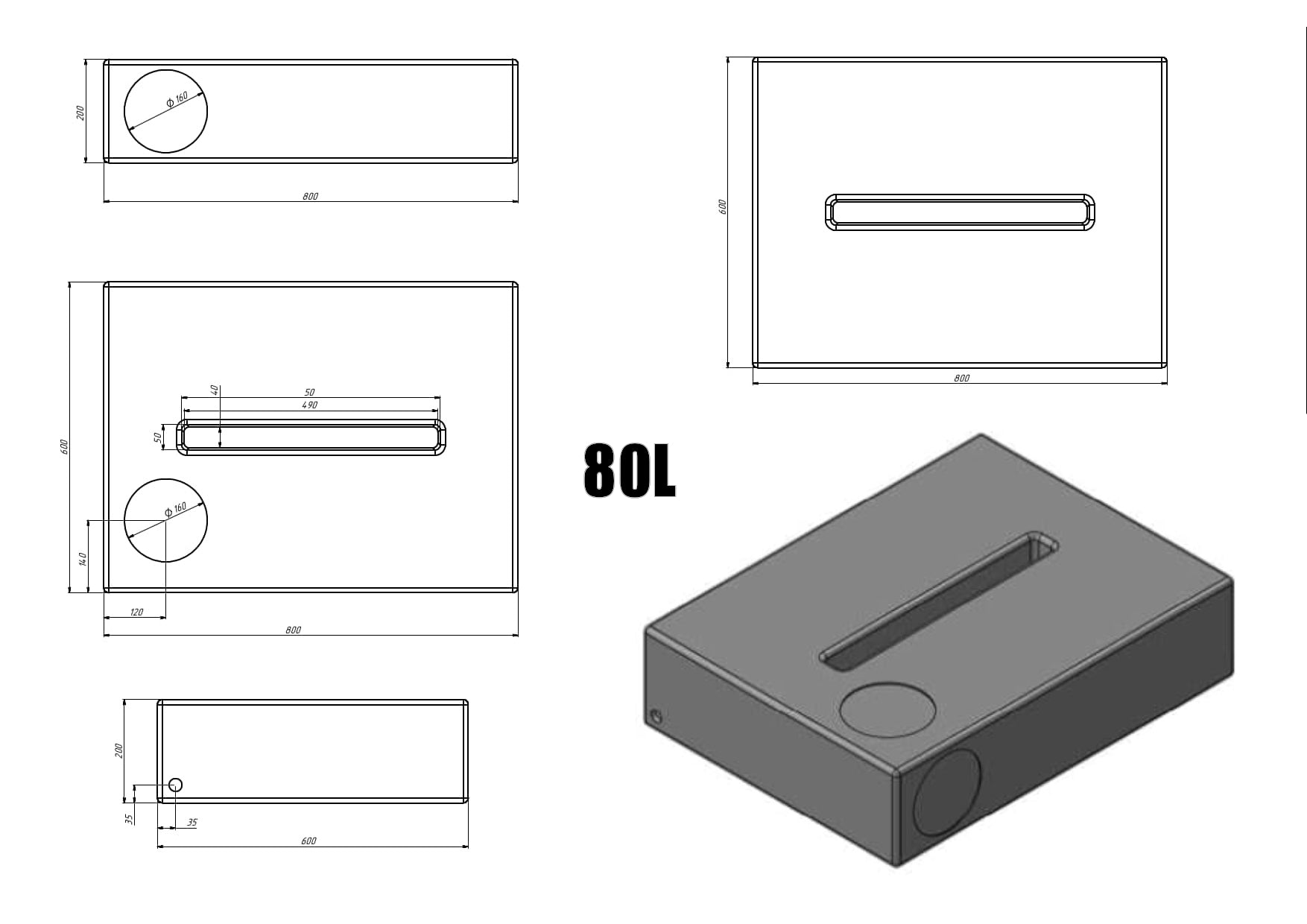 - Length: 80 cm, Width: 60 cm, Height: 20 cm