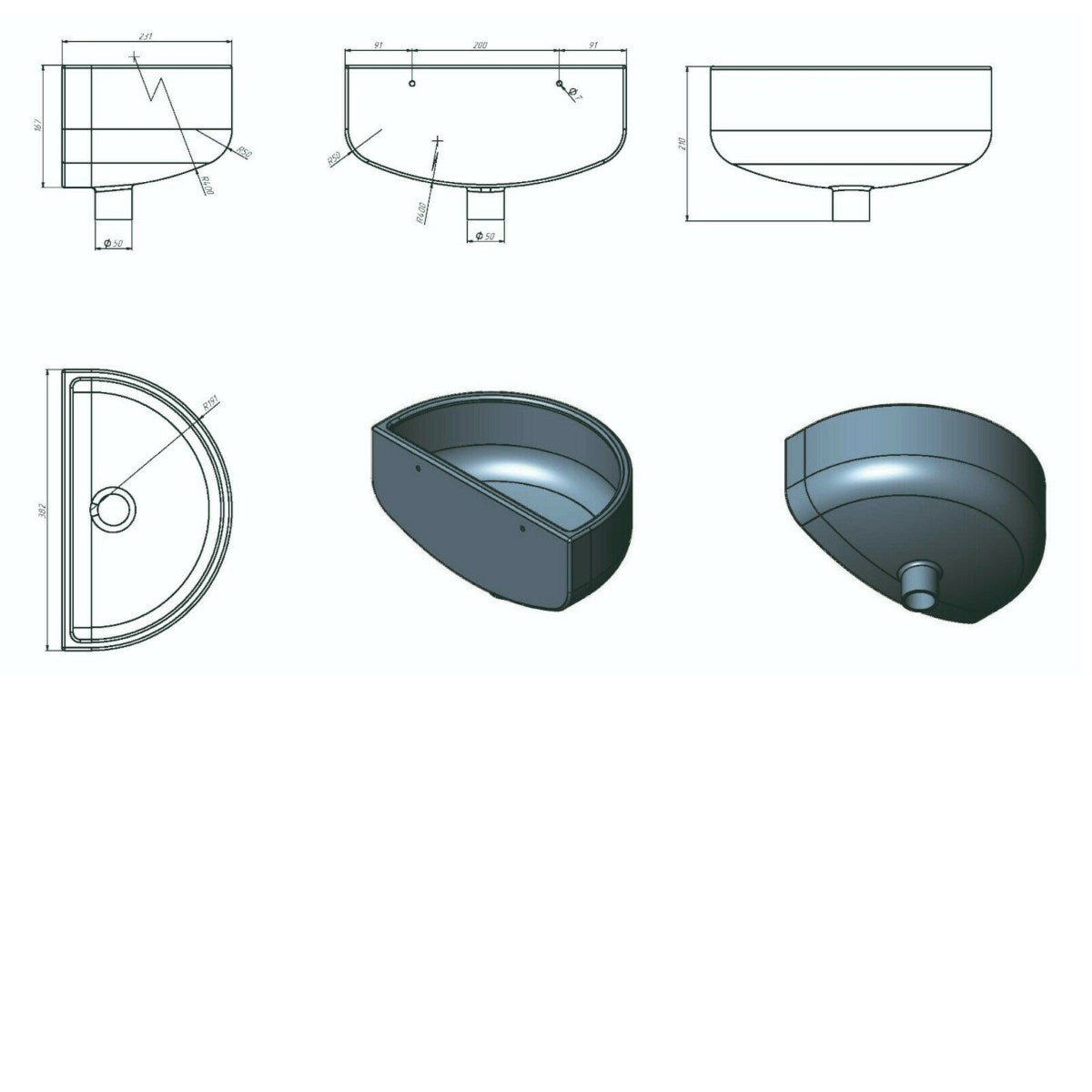 Bitte nehmen Sie zur Kenntnis dass, das Waschbecken keine vorgebohrten Montagelöcher besitzt, da jeder Kunde individuelle Rahmenbedingungen für den Befestigungsplatz und -punkte am Waschbecken hat. Da das Material leicht zu bearbeiten ist können Sie das Becken über Schrauben, Blindnieten, Kleber, uvm. befestigen.