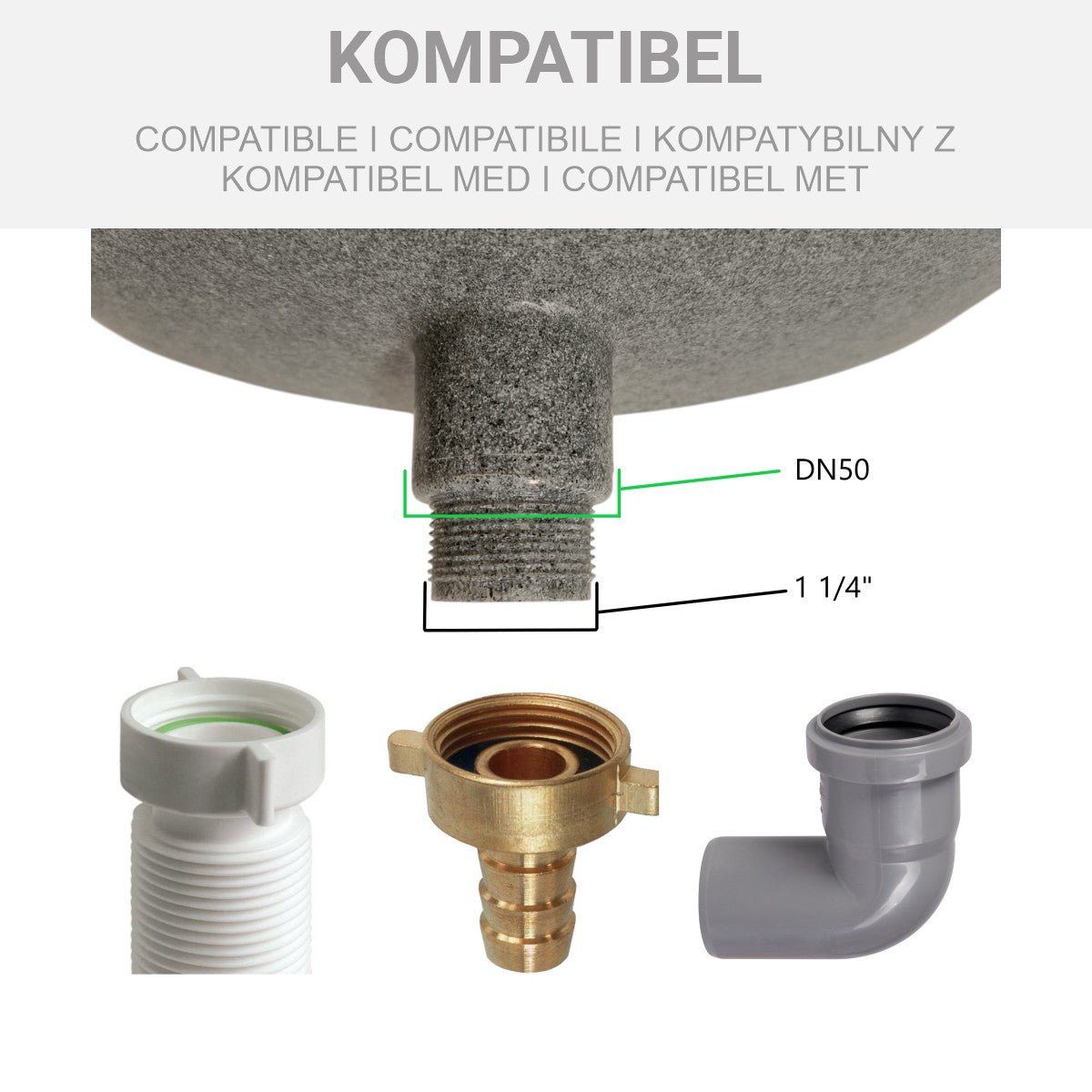 - PVC Adapter DN50 auf 1 1/4 Zoll für ein Spülensiphon- oder Ablaufgarniturmontage