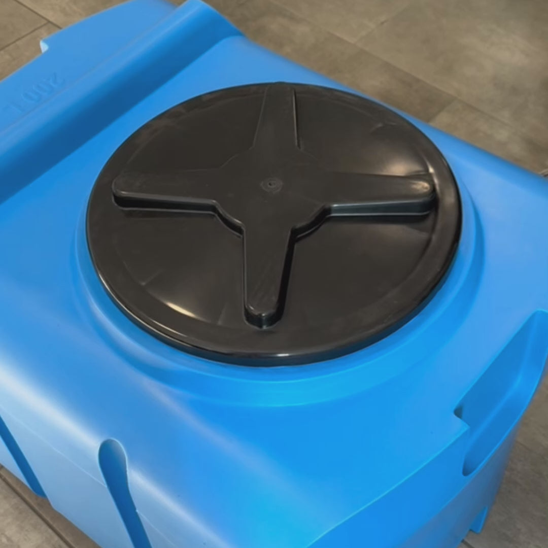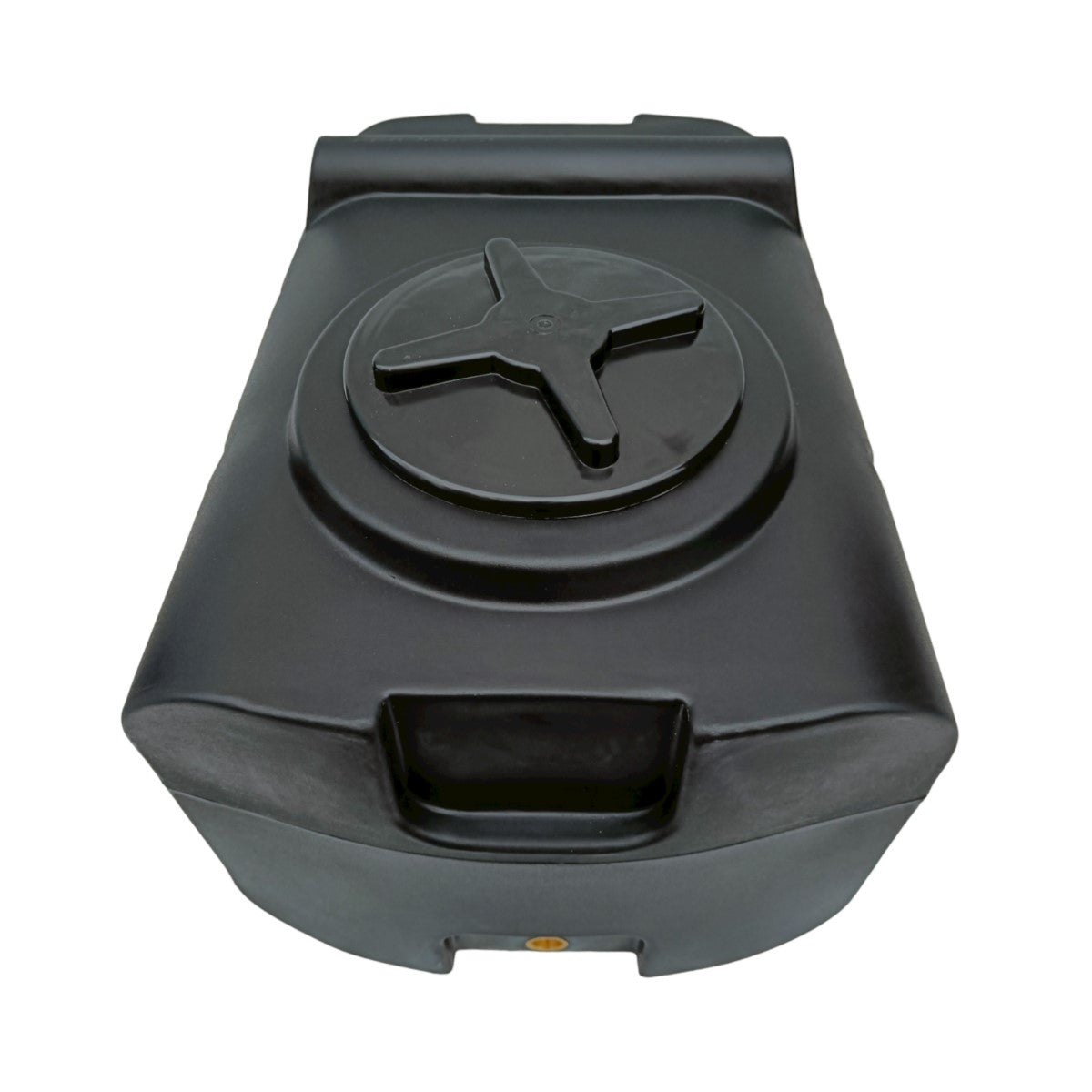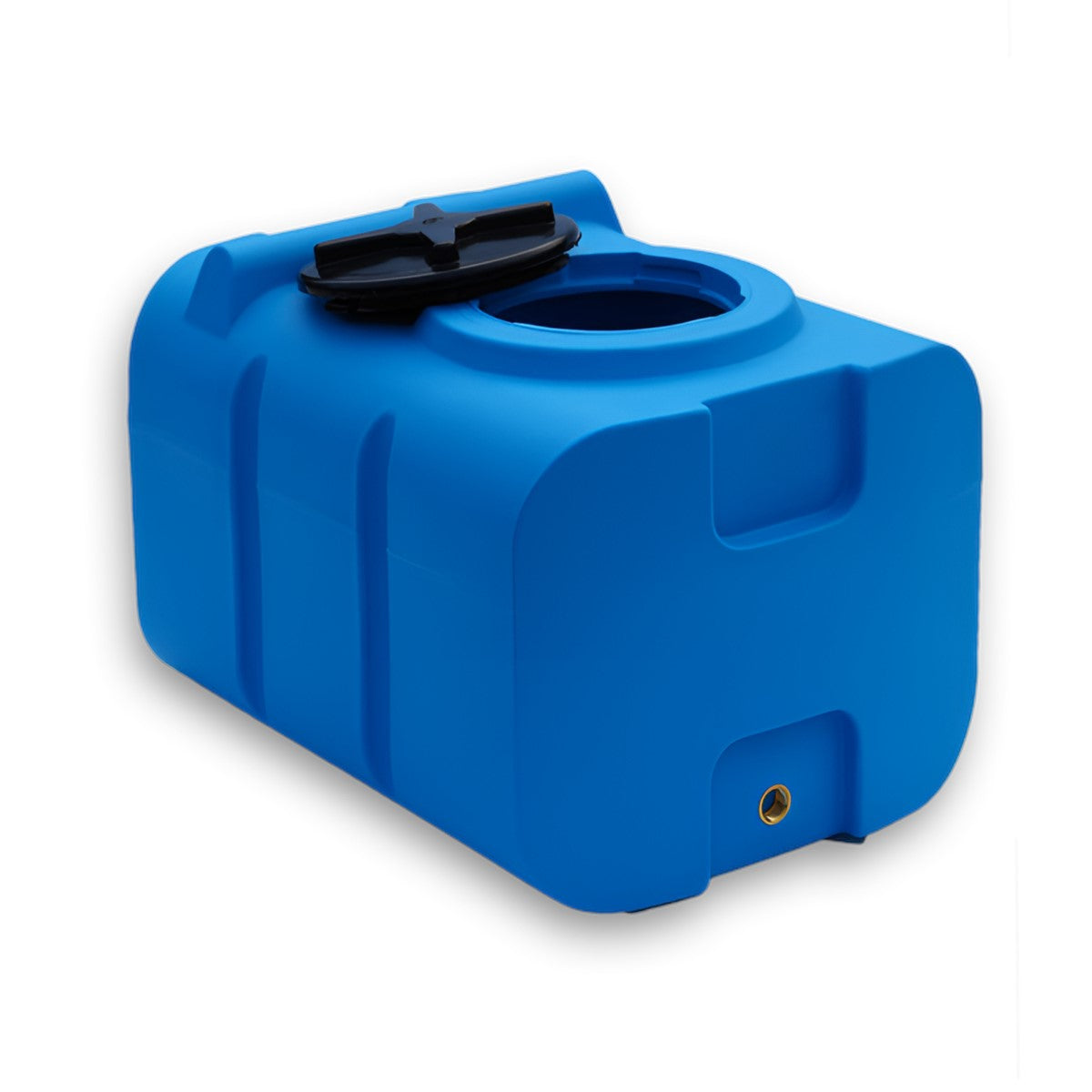 Rechteckiger Wassertank aus Lebensmittelechtem, UV Beständigem Kunststoff (Polyethylen) 100 Liter Fassungsvermögen für Trinkwasser und andere Flüssigkeiten. Der Behälter ist dank der großen Öffnung leicht zu überprüfen und zu reinigen.